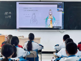 课堂上,商喾文以《子路、曾皙、冉有、公西华侍坐》为核心内容,用场景化、互动式的教学方式,带领同学们走进孔子与弟子畅谈理想的经典情境。课程围绕人物解读、文本精读、内涵阐释展开,既逐句讲解文言知识,又拆解对话深意,还解读子路、冉有、公西华、曾皙四位弟子的不同志向,并深入阐释孔子“因材施教”“以礼治国”的教育理念与人文思想。课堂设置分角色朗读、互动问答等环节,云端课堂交流充分,氛围热烈。古老的《论语》智慧以更鲜活、更易懂的方式走进同学们的心中。