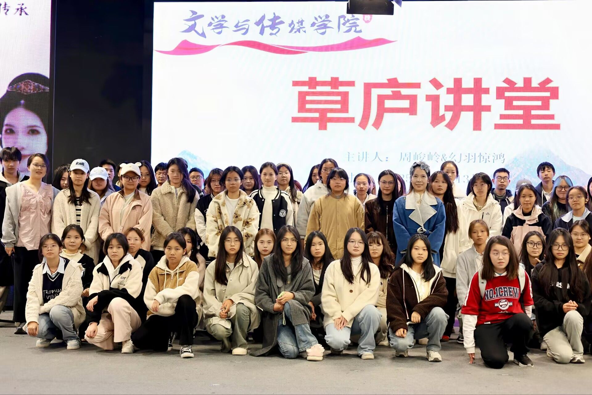 (文传学院 通讯员 刘齐 文柳)11月13日下午,由文传学院举办的 “草庐讲堂” 在学院演播厅开展,特邀襄阳民间文艺家协会副主席周峻岭老师为师生带来沉浸式非遗体验。周老师深耕非遗传承多年,以 “幻羽惊鸿” 为网名活跃于文化传播平台,分享襄阳非遗故事,吸引年轻人爱上传统文化。